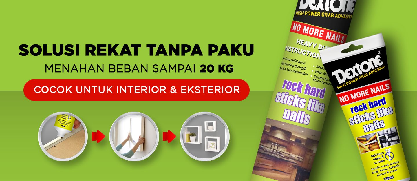 Dextone dikenal sebagai merek perekat dan sealant premium dengan daya rekat kuat, tahan lama, serta formulasi tepat. Dipercaya oleh profesional dan pengguna rumahan karena kualitas dan keandalannya.